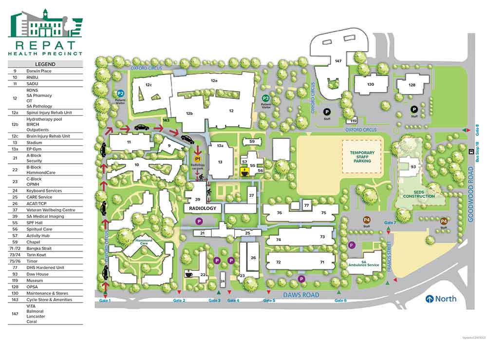 Please enter from Daws Road, Gate 1 and follow signs to Radiology and Yellow coloured P1 car park.